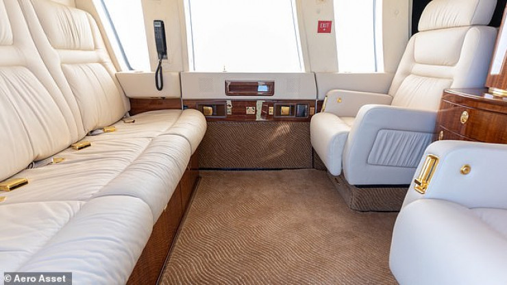 Салон вертолета украшен мягкой обивкой из кремовой кожи, золотыми ремнями безопасности и элементами декора из африканского красного дерева. Встроенный экран также позволяет пассажирам смотреть телевизор или следить за своим продвижением на движущейся карте "Авиашоу". Сам вертолет часто использовался, находясь в воздухе более 6000 часов и совершив почти 20 000 рейсов.