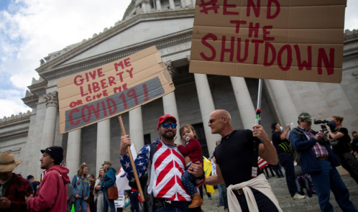 18 сәуірде АҚШ астанасы Вашингтонда Капитолия ғимаратының алдында 2,5 мың адам карантинге қарсы митингіге шықты. Тұрғындар ошлаулану режимін жеңілдетуді талап еткен, себебі халық карантинге байланысты жұмыссыз қалған.
