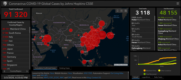 По актуальным данным, в мире заразились 91,3 тысячи человек. 3118 человек скончались от болезни. И более 48 тысяч официально выздоровели после заражения. Вирус COVID-19 затронул треть стран мира.