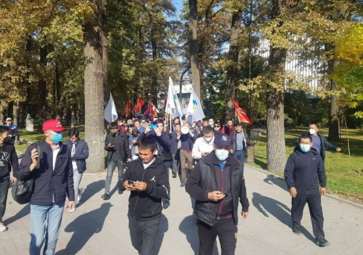 "Sputnik Қырғызстан" мәліметінше, жергілікті тұрғындар 5 қазан сағат 11:00 шамасында ел астанасындағы "Ала-Тоо" алаңына жиналған. Басылым хабарлауынша, бастапқыда наразылық шарасына мыңға жуық адам жиналып, бірнеше партияның жақтастары митингке шықты.