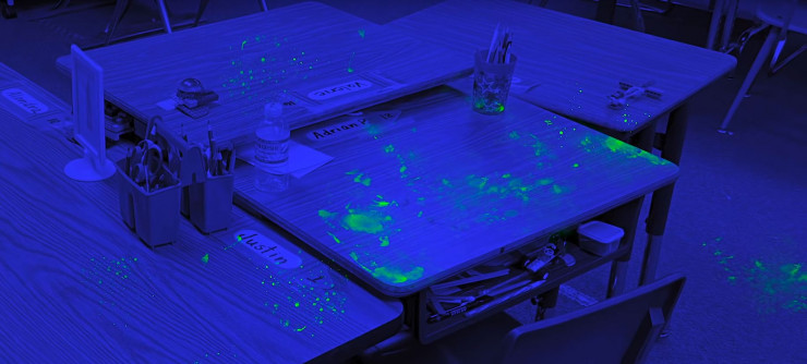 Марк Робер провел эксперимент среди детей дошкольного обучения. Он попросил преподавательницу пожать руки трем малышам, однако предварительно на ее кисти был нанесен порошок под названием GLO Germ, который, как и настоящие микробы, невидим и распространяется при любом контакте. Однако, в отличие от микробов, следы порошка можно разглядеть под ультрафиолетом, что позволило Роберу отслеживать, как они распространяются в течение всего эксперимента.