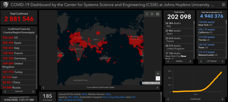 Согласно данным университета, от COVID-19 скончались 202 092 человека, более 810 тысяч человек вылечились, общее число случаев заражения достигло 2 881 546.