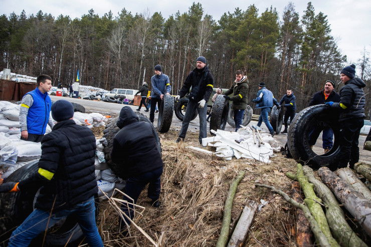 Сводка от Генштаба Украины: в Полесье оккупанты пытаются снова наступать на Киев. Для этого они сделали понтонную переправу через город Ирпень в районе Демидова. В украинской столице организована плотная система защиты. Ведется борьба с немногочисленными ДРГ численностью 3-15 человек. Они в форме ВСУ, но в российских бронежилетах. Россиянам не удалось захватить город Ирпень: их техника уничтожена. Украинские защитники удерживают оборону на всех обозначенных позициях в стране. Россияне с воздуха и на земле атакуют военные и гражданские аэродромы, силы ПВО, города и критическую инфраструктуру. Воздушные силы Украины отражают воздушные удары.