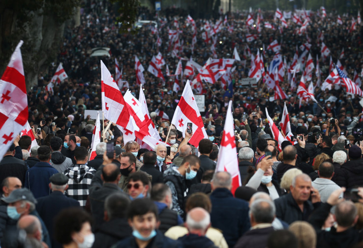 Десятки тысяч людей вышли в центр Тбилиси с требованием освободить Саакашвили