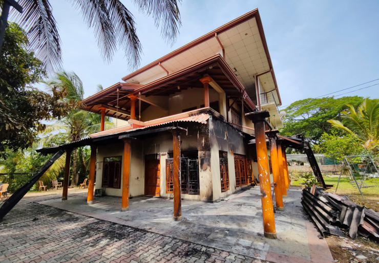 Сотни людей напали на небольшую группу полицейских, охранявших его виллу, и учинили акт вандализма. С виллы группа направилась в музей, посвященный покойному отцу Готабаи и Махинды, где снесли экспонаты и подожгли интерьер.