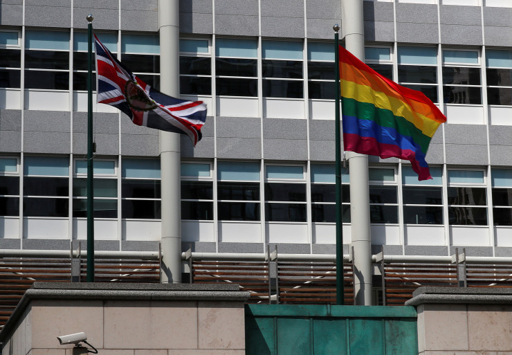 "Таким образом мы хотим выразить солидарность с представителями ЛГБТ-сообщества в России и во всем мире. Никто из них не требует для себя особых привилегий, а лишь достойного и уважительного отношения к себе и тех же прав, которые имеют остальные люди", - прокомментировали появление радужного флага британские дипломаты.