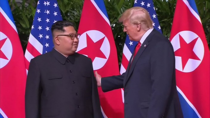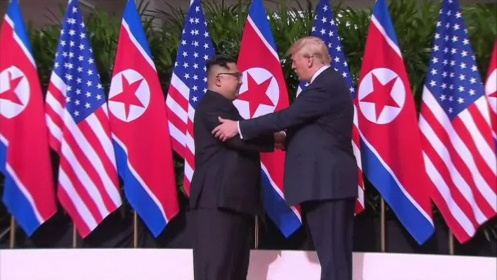 Президент США Дональд Трамп и лидер Северной Кореи Ким Чен Ын встретились в Сингапуре во вторник утром на первом в истории саммите двух государств. Трамп и Ким Чен Ын впервые пожали друг другу руки, сообщает корреспондент РИА Новости.