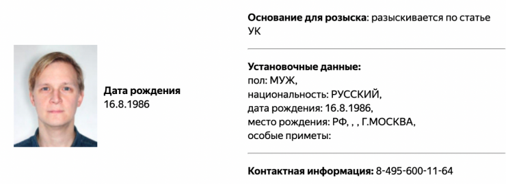 Карточка ютубера появилась в базе розыска министерства. На сайте ведомства сообщается, что блогер разыскивается по статье УК РФ. Другой информации МВД не приводит.