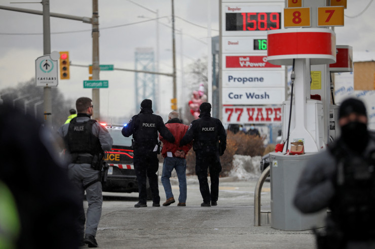 Власти Канады заявили, что самое оживленное торговое сообщение Северной Америки вновь откроется для движения, положив конец шестидневной блокаде, после того как канадская полиция разогнала участников так называемого "Конвоя свободы", выступающих против обязательных паспортов вакцинации.