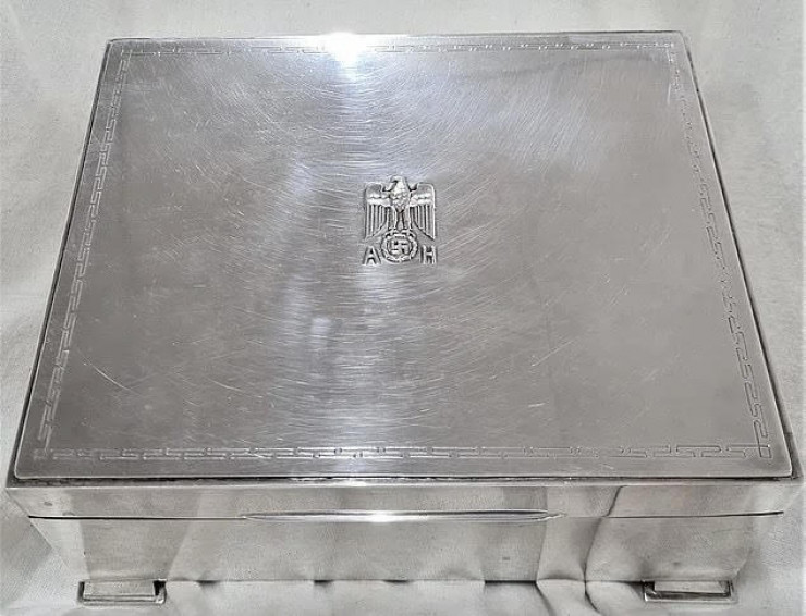 На каждом предмете на аукционе австралийской компании JB Military Antiques были изображены нацистские знаки отличия и инициалы Адольфа Гитлера – AH. Среди предметов были коробка для сигарет, графин, ведерко для льда, соусник и расческа.