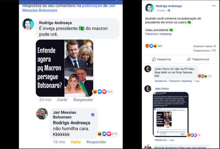 "Понимаете теперь, почему Макрон преследует Болсанару", - подписал фото Родригу Андреаса.