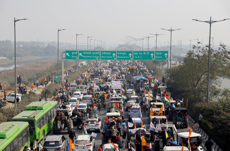 Протесты аграриев продолжаются с конца ноября. С этого времени протестующие проживают в своем лагере на окраине Дели.