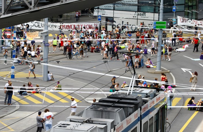 В Женеве несколько тысяч женщин и мужчин прошлись маршем по основной торговой улице и мосту через Рону, который связывает два берега, на которых расположился город. Движение общественного и частного транспорта было перекрыто почти на три часа. Однако никаких эксцессов не произошло, шествие было мирным, несмотря на то, что молодежь в процессе открыто употребляла спиртные напитки.