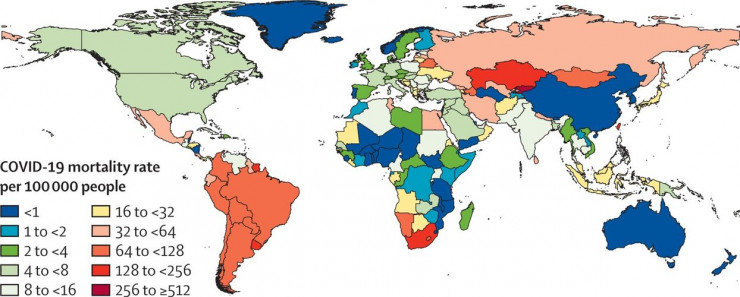 Расчетный уровень смертности от COVID-19 в мире. © The Lancet