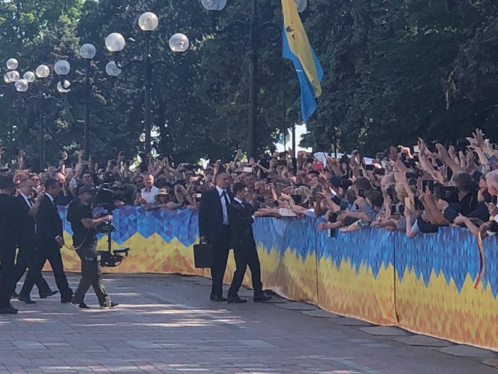 Во время выступления Владимира Зеленского перед парламентом Украины царила невероятная атмосфера, передает собственный корреспондент Tengrinews.kz. Журналисты плакали, смеялись и громко аплодировали. Зеленский завел публику еще по пути в Верховную раду, когда охотно жал руки и фотографировался со зрителями.