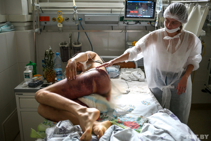 Снимки сделаны в больнице скорой медицинской помощи в Минске с согласия пациентов. "Эти фотографии тяжело смотреть даже человеку с крепкой психикой. Воздержитесь от просмотра, если вы очень впечатлительны", - пишет издание.