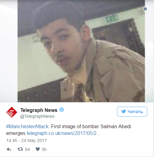 Предполагаемый террорист, 22-летний Салман Абеди действовал с сообщниками, ранее, 24 мая, сообщил телеканал NBC. По сообщениям источника, бомба, которую подорвал террорист, оказалась "большой и сложной" и состояла из компонентов, которые трудно достать в Великобритании.