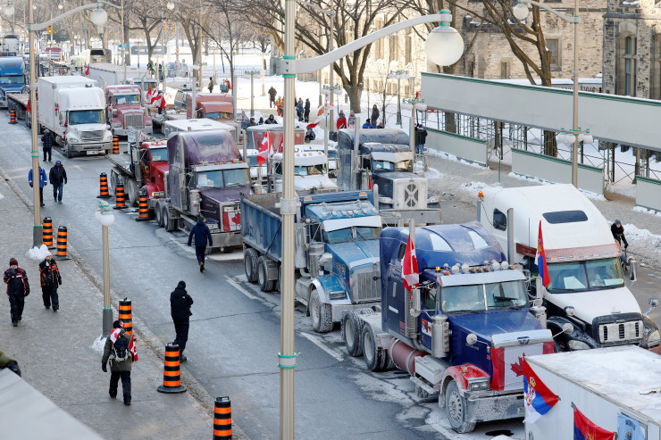 В Канаде набирает обороты антиправительственный митинг дальнобойщиков под лозунгом "Колонна свободы", который начался в столице страны Оттаве 23 января. Тысячи водителей-дальнобойщиков, которых правительство обязало делать прививки, если они собираются пересекать границу с США, собрались перед зданием парламента, чтобы выразить свое несогласие с антиковидными мерами правительства.