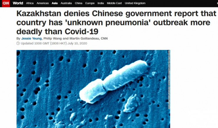 Елімізде соңғы айда пневмониямен ауырып жатқандар көбейді. Одан адам өлімі де жиі тіркеліп жатыр. Қытайда Қазақстандағы "белгісіз пневмония" туралы ақпарат тараған. Америкалық CNN қытайлық үкіметтің елде коронавирустан да қауіпті "белгісіз пневмонияның" тарағаны туралы ақпаратты Қазақстан жоққа шығарғанын жазған. Басылым Қытайдың Қазақстандағы елшілігі бейсенбі, 9 шілдеде ортаазиляқтарға елде пневмониядан 1700 адам қайтыс болғанын ескерткенін жазған.