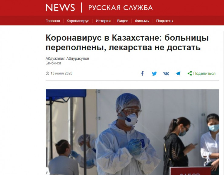 Ұлыбританиялық ВВС Қазақстандағы коронавирус, оның ішінде, ауруханадағы жағдай мен дәрі-дәрмектің жетіспеушілігі туралы ақпарат берген. Басылым елде COVID-19 жұқтырғандар саны күрт ұлғайғанын жазған.