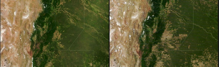 На этих изображениях показаны последствия вырубки леса в аргентинском лесу Гран-Чако в период с декабря 2019 года по декабрь 2020 года. По данным Всемирного фонда дикой природы, лес Гран-Чако является средой обитания для тысяч видов растений и сотен видов животных. На втором изображении большая часть леса заменена полями для выращивания сои и крупного рогатого скота. Стоит отметить, что Аргентина является третьим по величине производителем сои в мире.