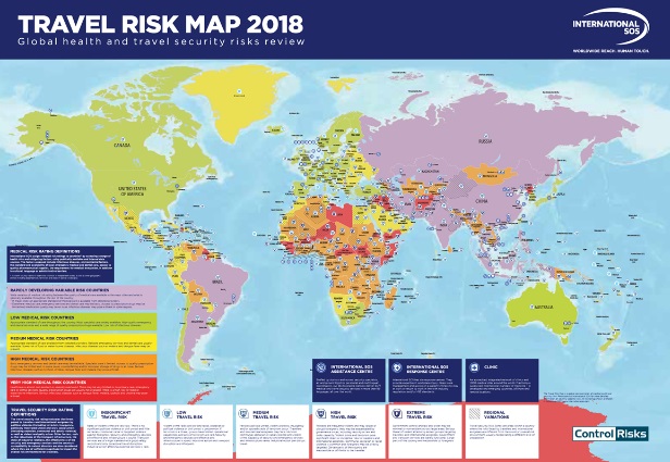 Сотрудники медицинской сервисной компании International SOS составили интерактивную карту мира, на которой отметили самые опасные и безопасные для путешественников страны.