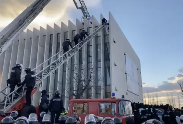 "Параллельно в помещении был использован слезоточивый газ. Сотрудники МВД покидали здание и двор офиса ЕНД под выкрики "Рабы!" и "Позор!" - резюмирует издание.