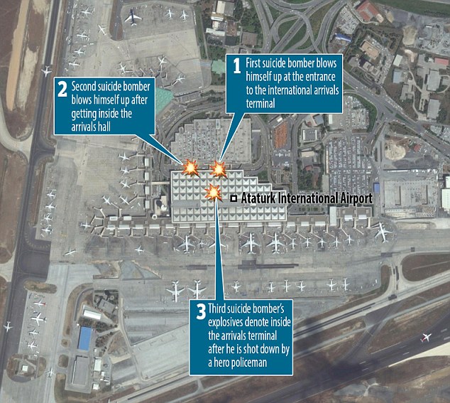 Места, где прогремели взрывы в аэропорту Ататюрка