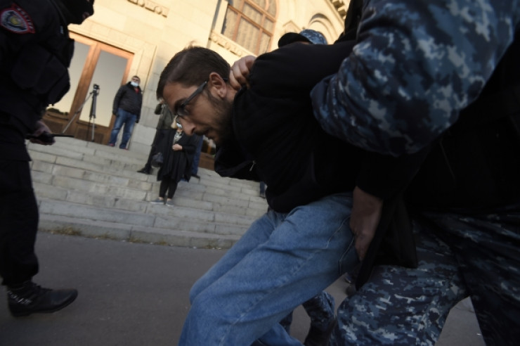 Подразделения МВД Армении начали разгон акции. Также силовики проводят задержания участников митинга.