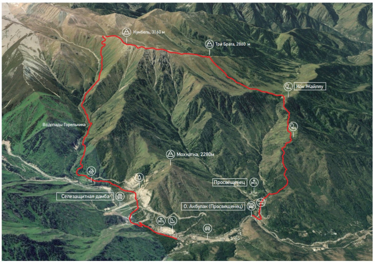 Описание: "Ак-Булак" - Кок-Жайляу - вершина Кумбель - западный гребень Кумбеля - Горельник