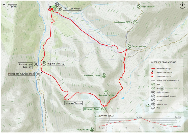 Описание: Горнолыжный комплекс (ГЛК) "Шымбулак" - перевал Абая - Чертово Ущелье - "Шымбулак"
