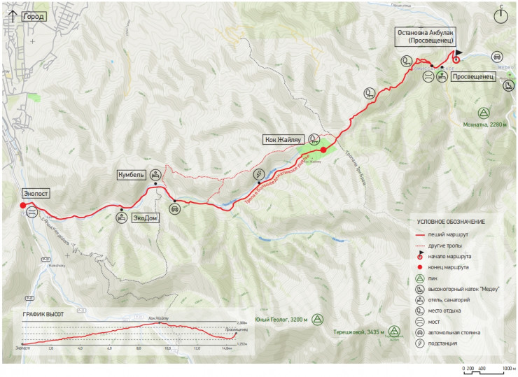 Медеу - остановка "Ак-Булак" - Кок-Жайляу - поселок Кумбель