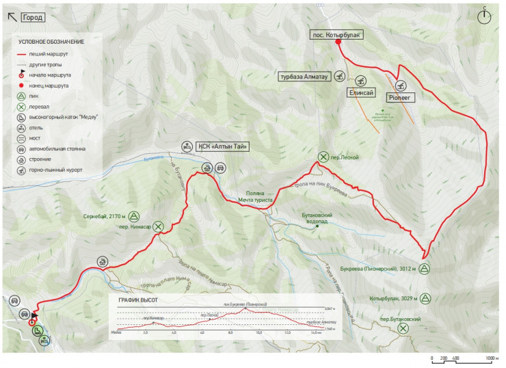 До перевала Лесной идти по маршруту 107. Затем нужно с седловины свой путь продолжать на юг. Хорошо видимая тропа через 1,5-2 часа приведет вас к пику Букреева (Пионерский, 3150 м). Возвращаться можно по пути подъема по двум вариантам: на Медеу или через турбазу "Алматау" или поселок Котырбулак.